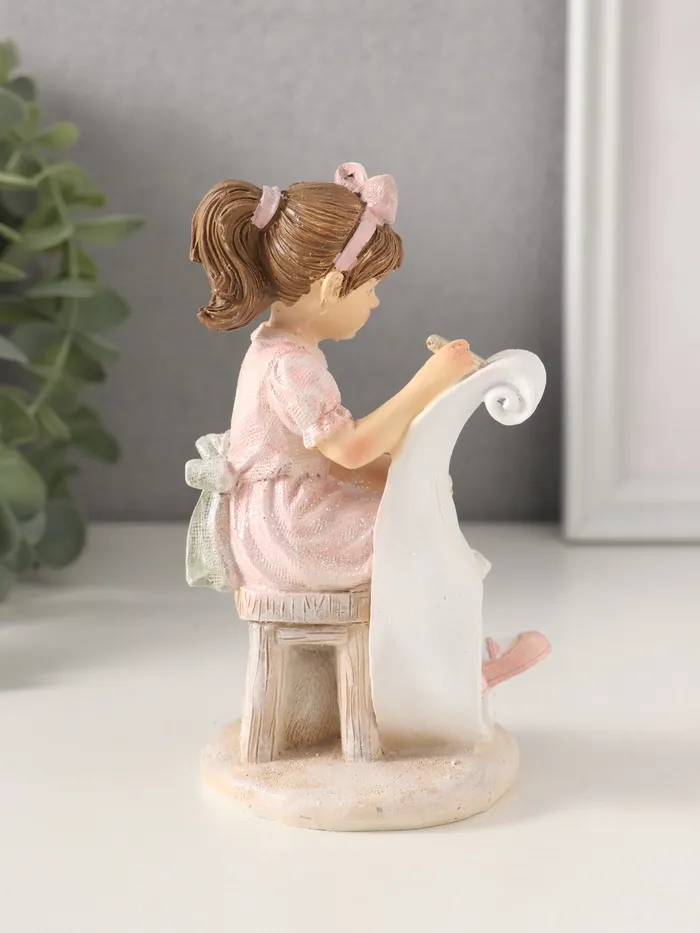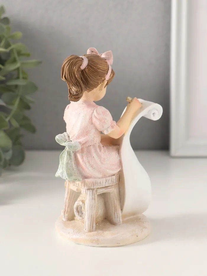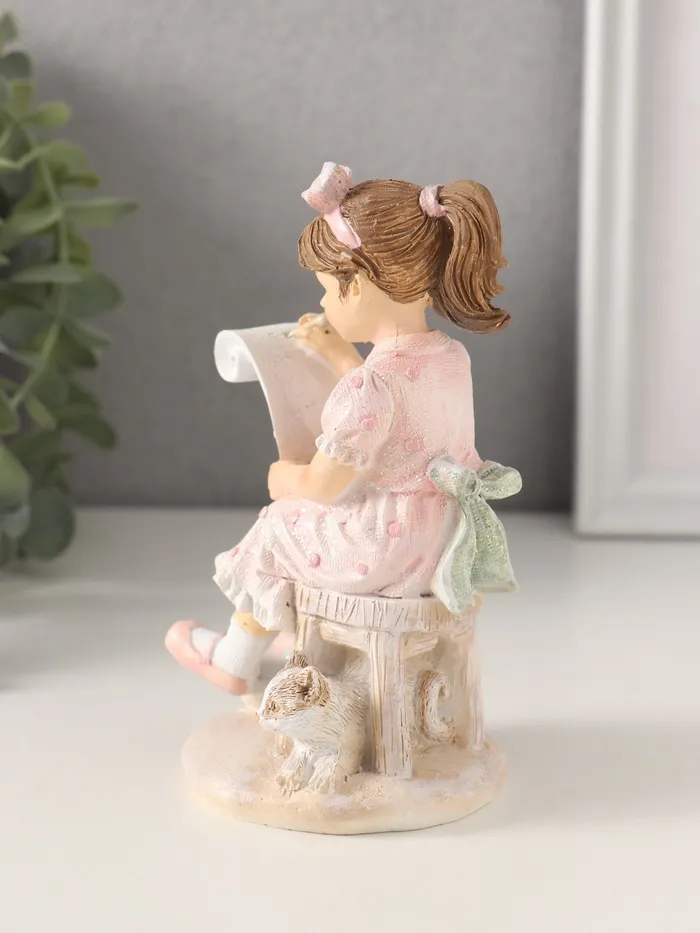 Фигурка «Девочка рисует, с котиком», полистоун, розовый 7.5×7×13 см — Характеристики