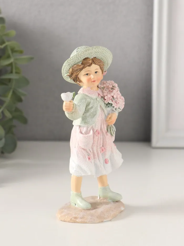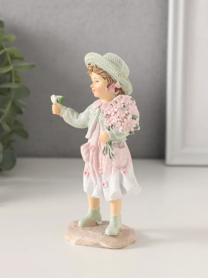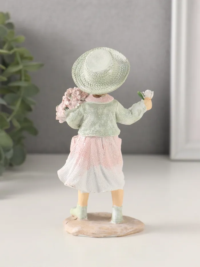 Фигурка «Девочка с букетом ромашек, в шляпке», полистоун, розово-зелёный, 6.5×4×12.5 см — Характеристики