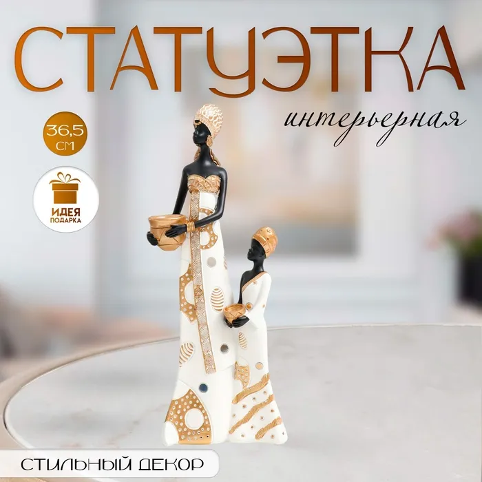 Фигурка полистоун «Африка: мать и дочь, с глиняной посудой», бело-золотой, 15×8.5×36.5 см