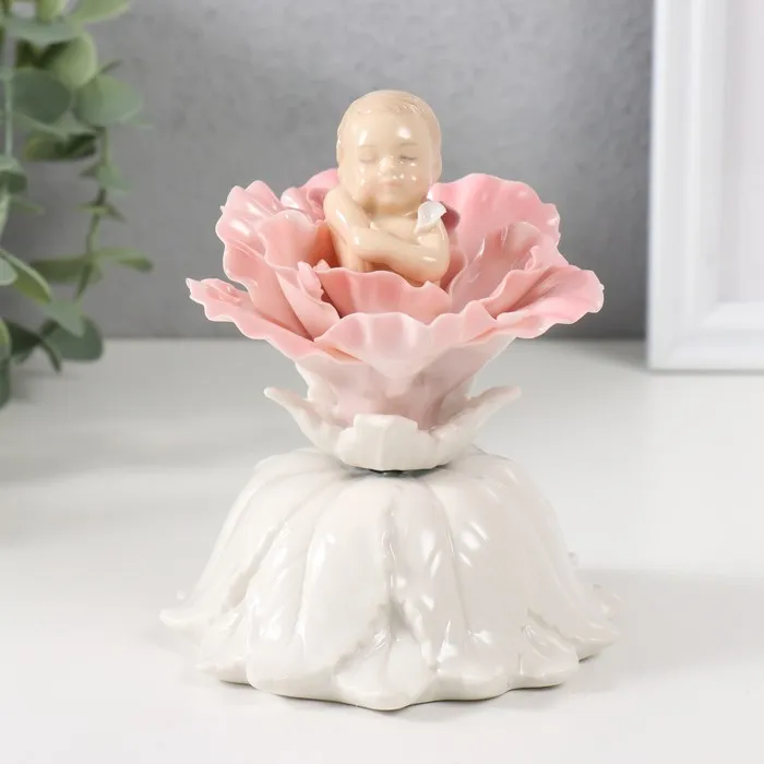 Сувенир керамика музыкальный "Малыш спит в распустившемся цветке" 10,5х10х13 см