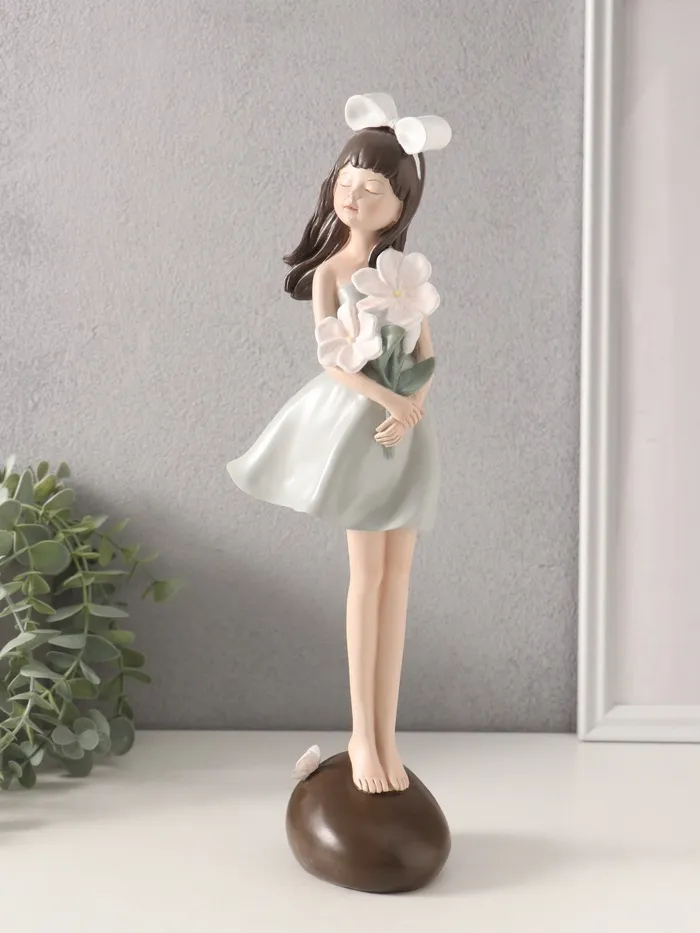 Представляем вам изысканную фигурку, которая станет настоящим украшением вашего интерьера — девушка с белыми цветами в руках. Эта элегантная композиция из полистоуна привносит в дом атмосферу нежности и утончённости, делая её идеальным выбором для ценителей красоты.
