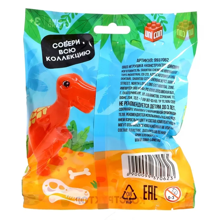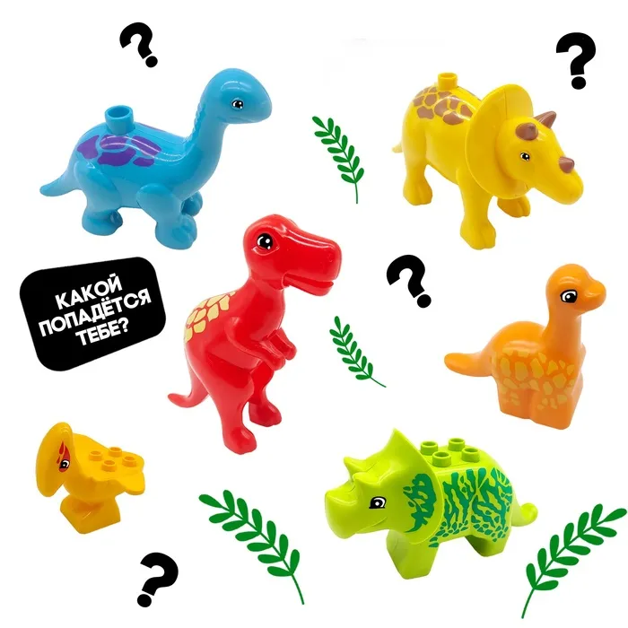 Фигурка для конструктора в виде динозаврика добавит играм разнообразия и динамики, дополнит сюжет и поможет проявить фантазию. Ребёнок построит доисторические локации и поселит в них забавных персонажей. В коллекции 6 видов фигурок, но каждая попадается случайным образом. Какой динозаврик придёт вам? Загадка!