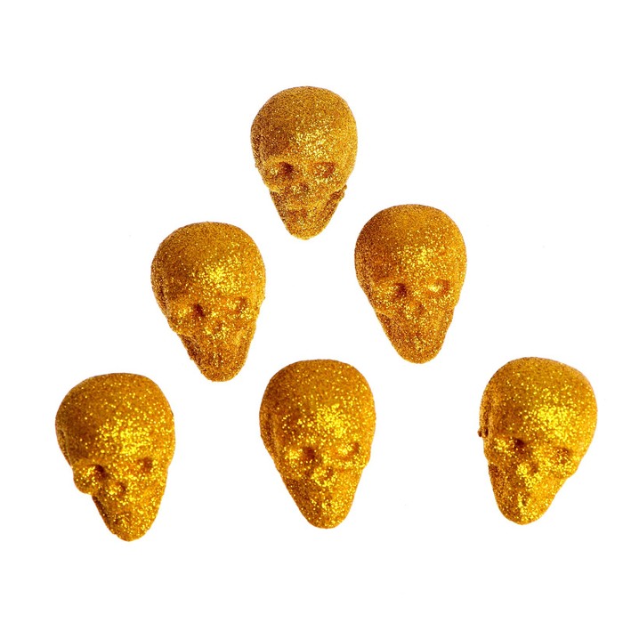 Фигурка для поделок и декора «Череп», набор 6 шт., размер 1 шт: 4 × 4,5 × 4,5 см, цвет золотой