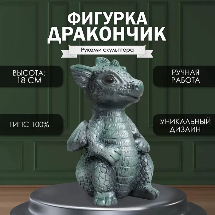 Фигурка "Дракончик" 18х10х10 см, тёмно-зелёный — Характеристики