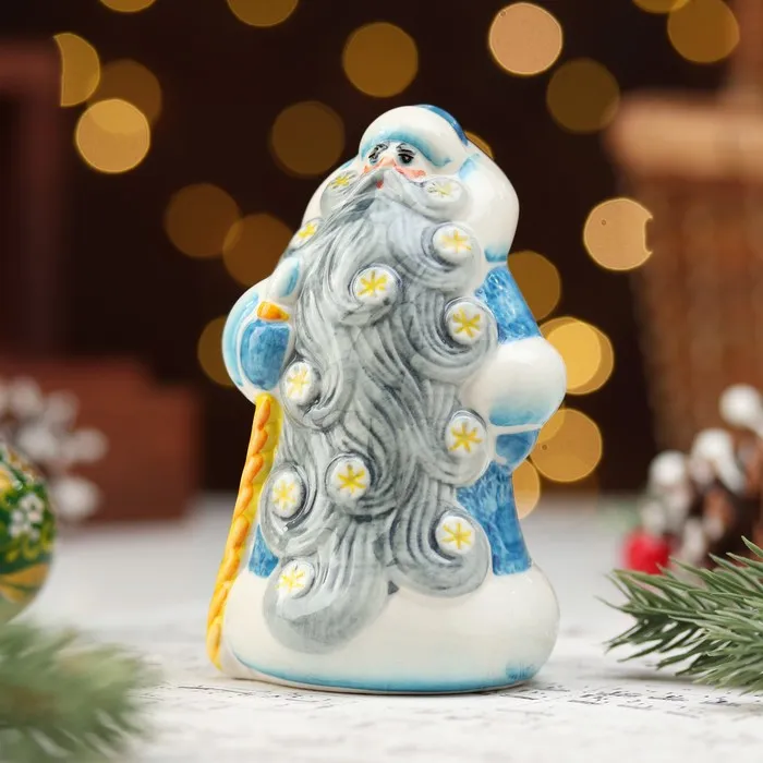 Фигурка фарфор «Дед Мороз Снеговей голубая шуба», 10 см — Характеристики