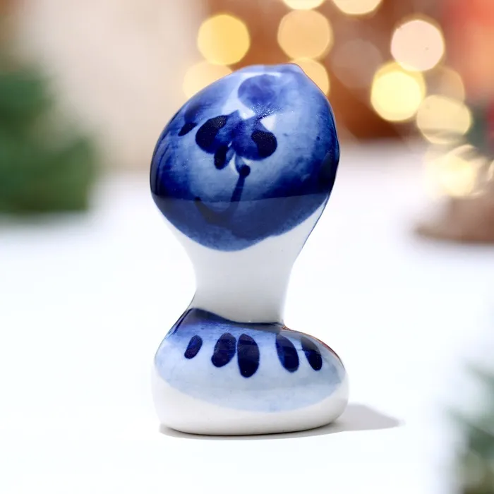 - Традиции гжели: Каждая деталь фигурки расписана вручную, что подчеркивает мастерство и уникальность изделия. Синие узоры на белом фоне символизируют самобытность русского народного искусства.