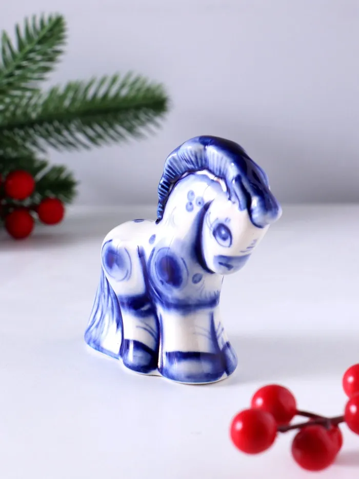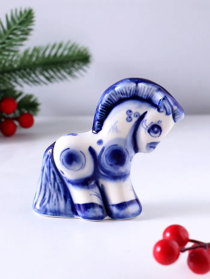 Фигурка фарфор гжель «Конь Буцефал», 9×10×3.5 см, бело-синий — Характеристики