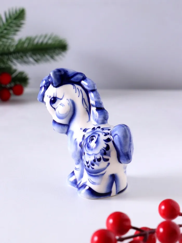 Откройте для себя уникальную фарфоровую фигурку «Конь Лёша», которая станет ярким акцентом в вашем интерьере. Эта миниатюра, выполненная в традиционном гжельском стиле, сочетает в себе изящество и символику, присущие русскому народному искусству, а её размеры 9×8.5×4 см делают её идеальной для любого пространства.