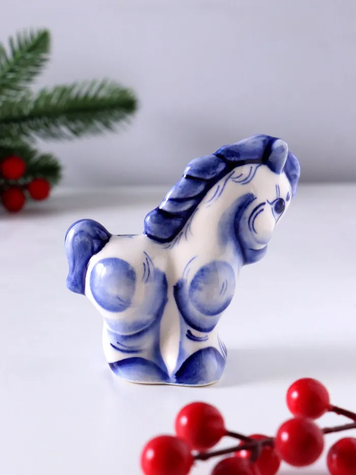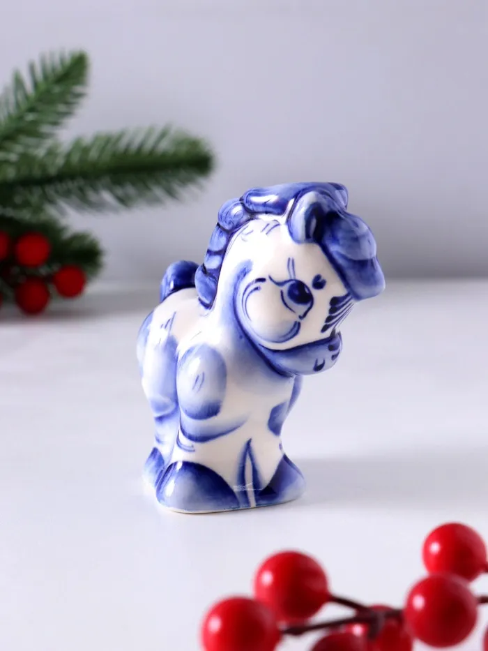 Фигурка фарфор гжель «Конь Лёша», 9×8.5×4 см, бело-синий — Характеристики
