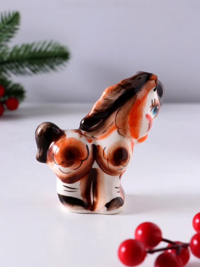 Мастера гжельской росписи вложили в эту фигурку всё своё умение: сочные цветные мазки создают динамичный образ, а тщательная проработка деталей (9×8.5×4 см) делает миниатюру выразительным акцентом в любом интерьере.