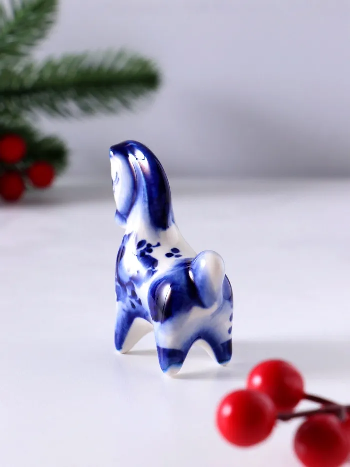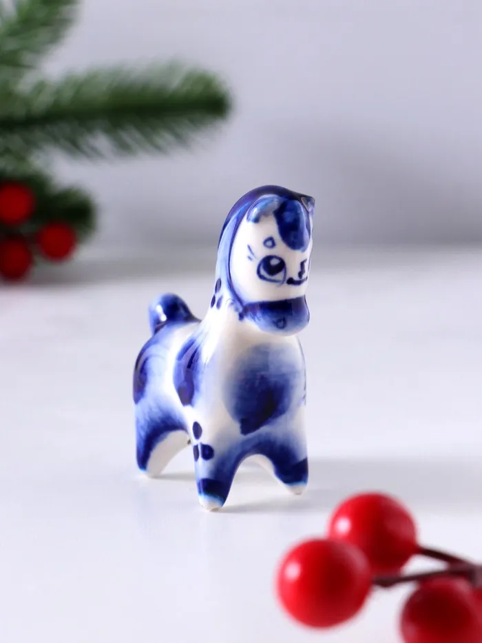 Фигурка фарфор гжель «Конь Мираж», 6.5×5.5×2.5 см, бело-синий — Характеристики
