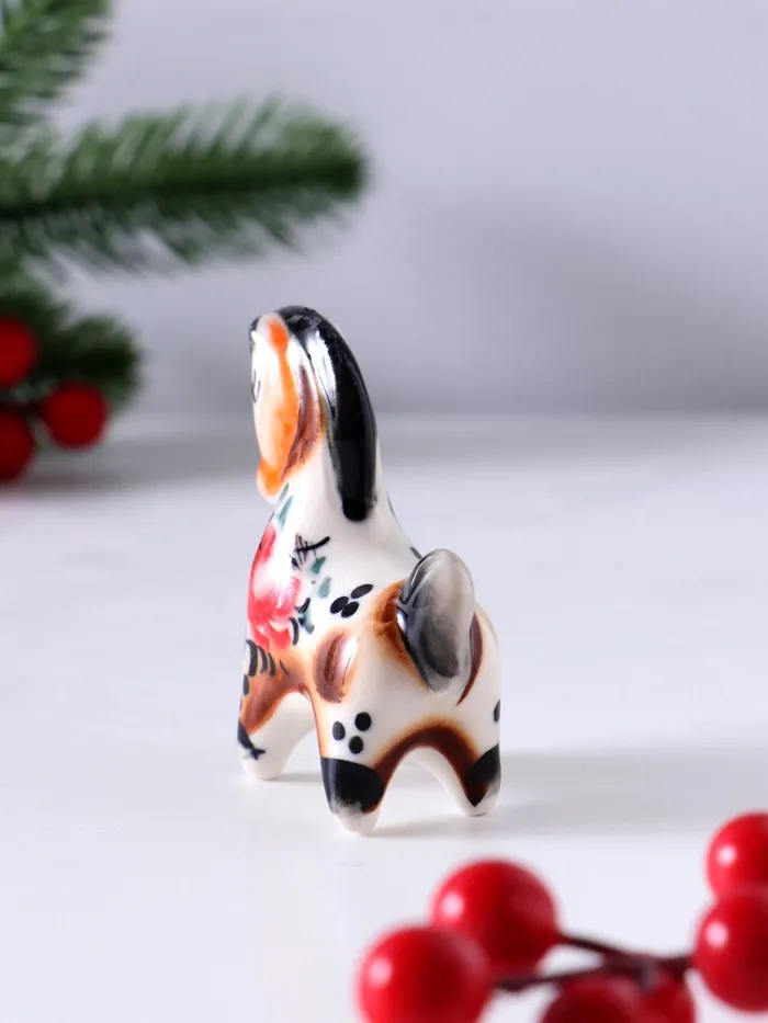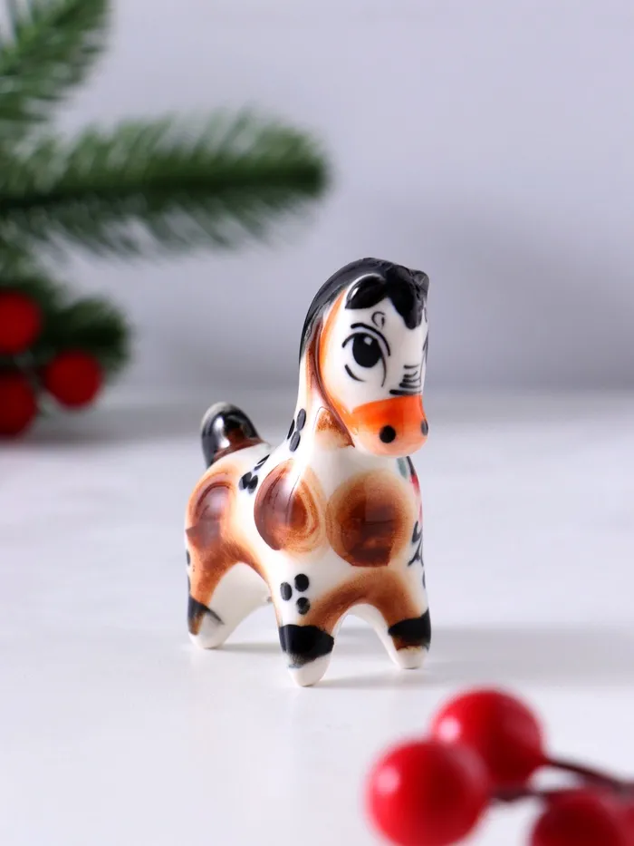 Несмотря на компактные размеры (6.5×5.5×2.5 см), фигурка поражает тонкостью проработки деталей: от изящного изгиба шеи до искусно переданной фактуры гривы. Интересная цветная палитра гжельской росписи придаёт образу особую выразительность и глубину.