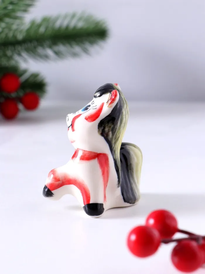 Этот очаровательный гжельский пони из фарфора станет трогательным дополнением новогоднего декора или милым акцентом в интерьере круглый год. Миниатюрная скульптура высотой 6,5 см передаёт всё обаяние традиционного русского промысла в современном исполнении.