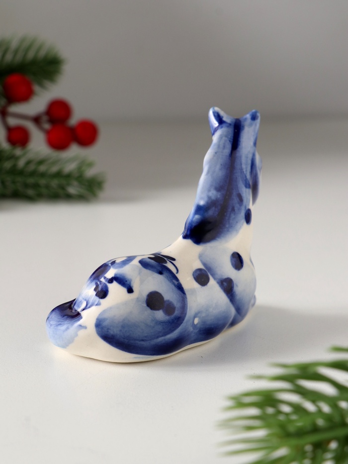 Созданная в традициях знаменитого гжельского промысла, эта фигурка сочетает благородную простоту белого фарфора и глубокий синий узор, который никогда не выходит из моды. Каждый элемент декора выполнен с особой тщательностью, что подчеркивает мастерство российских ремесленников. Размеры 7×9 см делают её удобной для размещения на полках, столах или в витринах, а небольшой вес позволяет легко переставлять её при необходимости.