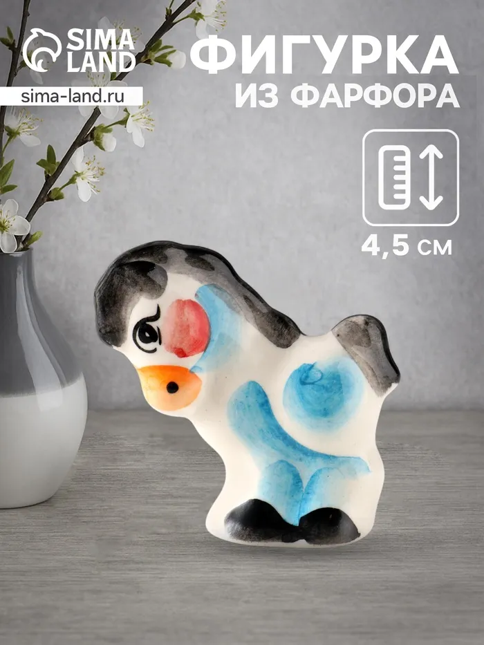 Фигурка фарфор гжель «Лошадь пони малая», 4.5×4.5×2.5 см, цветная — Характеристики