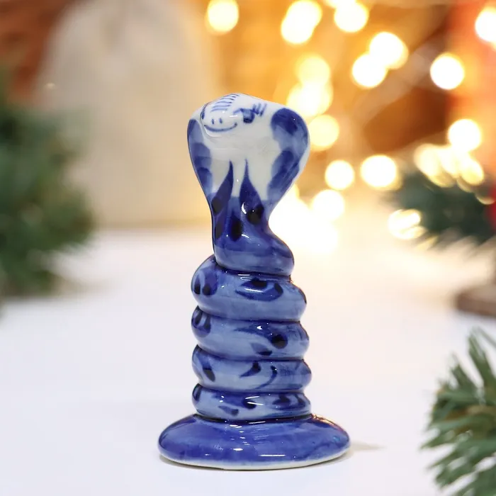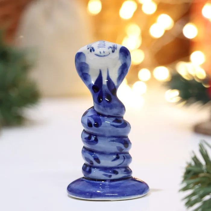 Фигурка фарфор гжель «Милая змея-кобра», 8 см — Характеристики