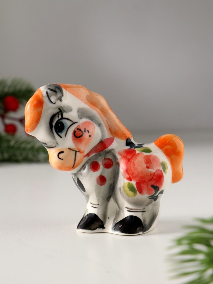 Фигурка фарфор гжель «Пони», 8×8 см, цветной — Характеристики