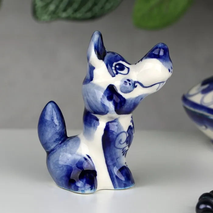 Фигурка фарфор гжель «Волк», бело-синий, 7 см — Характеристики