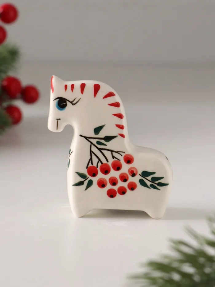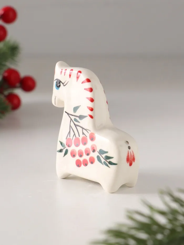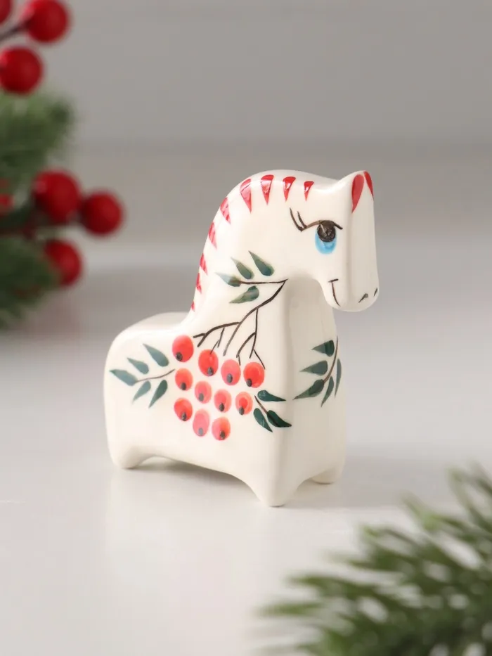 - Эксклюзивный дизайн: сочетание образа коня и символического рисунка рябины делает эту фигурку уникальным элементом декора, который подходит как для новогодних праздников, так и для масленичных торжеств.