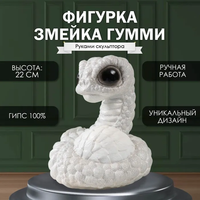 Фигурка гипс «Змейка Гумми», 22×16×18 см, белый