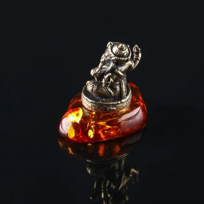 Сувенир из латуни и янтаря сможет стать самостоятельным подарком или необычным дополнением к нему и точно не останется без внимания.