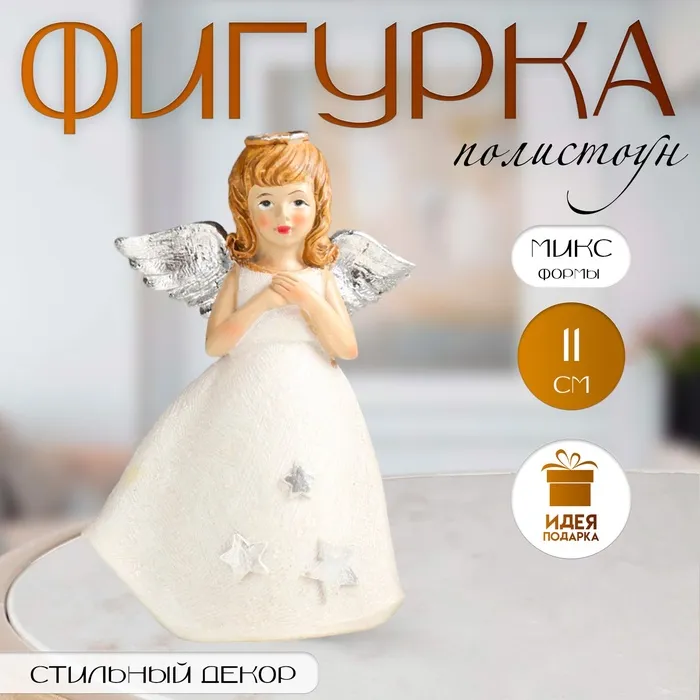 Фигурка гипс «Ангел с сердцем стоит», 8 см, белый — Характеристики