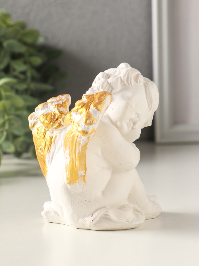 Белая гипсовая фигурка спящего ангела с позолотой — это воплощение тихой, умиротворяющей красоты. Она создаёт в доме атмосферу покоя и нежности, становясь тонким, но значимым акцентом в интерьере. Идеально подходит для создания особого настроения в рождественские и пасхальные дни, может стать трогательным свадебным подарком или знаком внимания на День всех влюблённых.