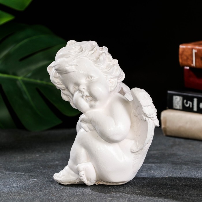 Эта гипсовая фигурка ангела — тонкое воплощение светлой грусти и нежности. Её сдержанная элегантность создаёт атмосферу умиротворения и задумчивости, становясь молчаливым собеседником в моменты размышлений. Статуэтка передаёт глубокий эмоциональный образ, понятный без слов.