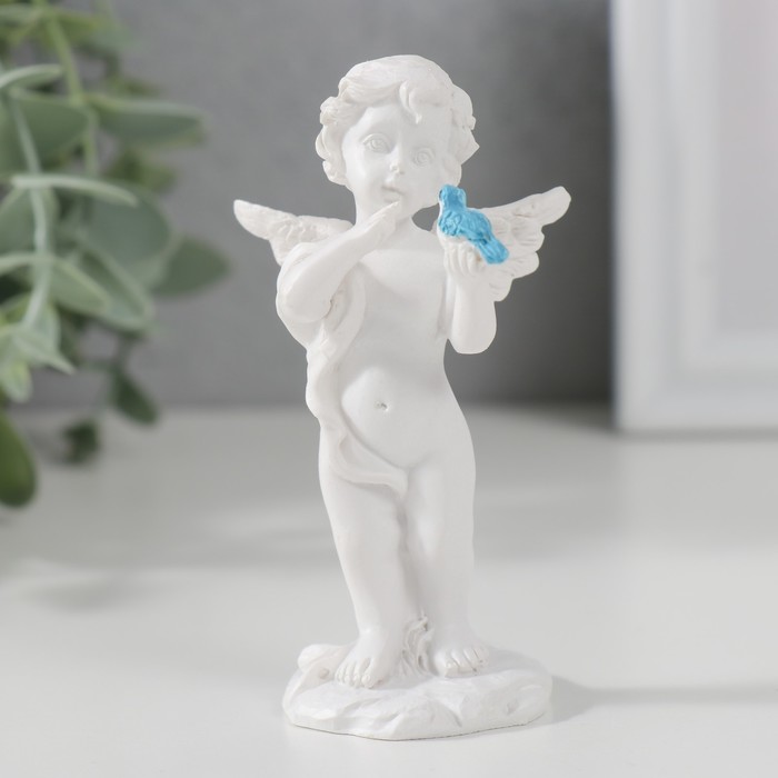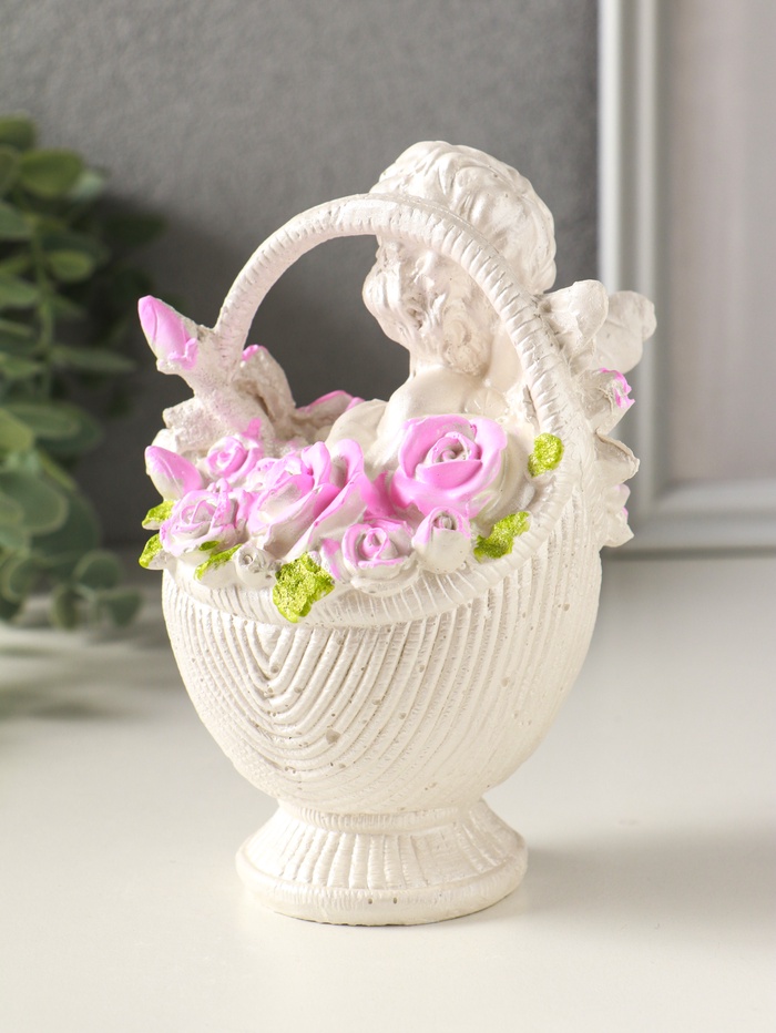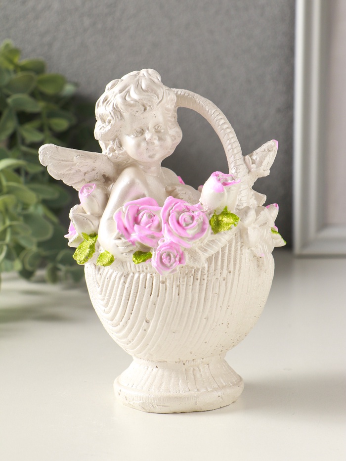Эта расписная гипсовая фигурка ангела — воплощение нежности и светлой торжественности. Помещённый в ажурную корзину, он становится готовым символом любви, надежды и домашнего уюта. Идеальный акцент для создания праздничной атмосферы или душевного подарка на особое событие.