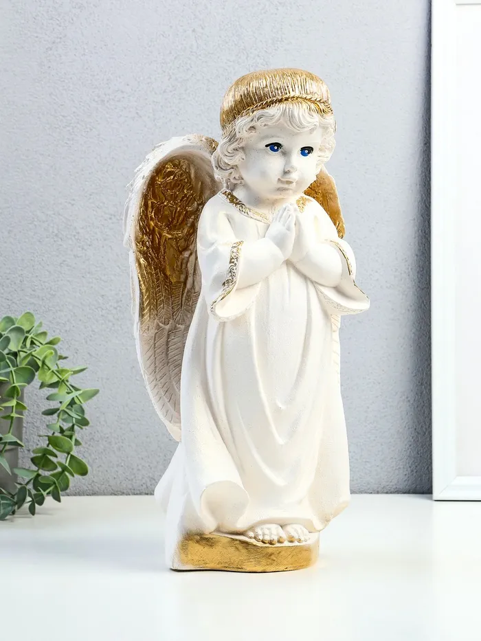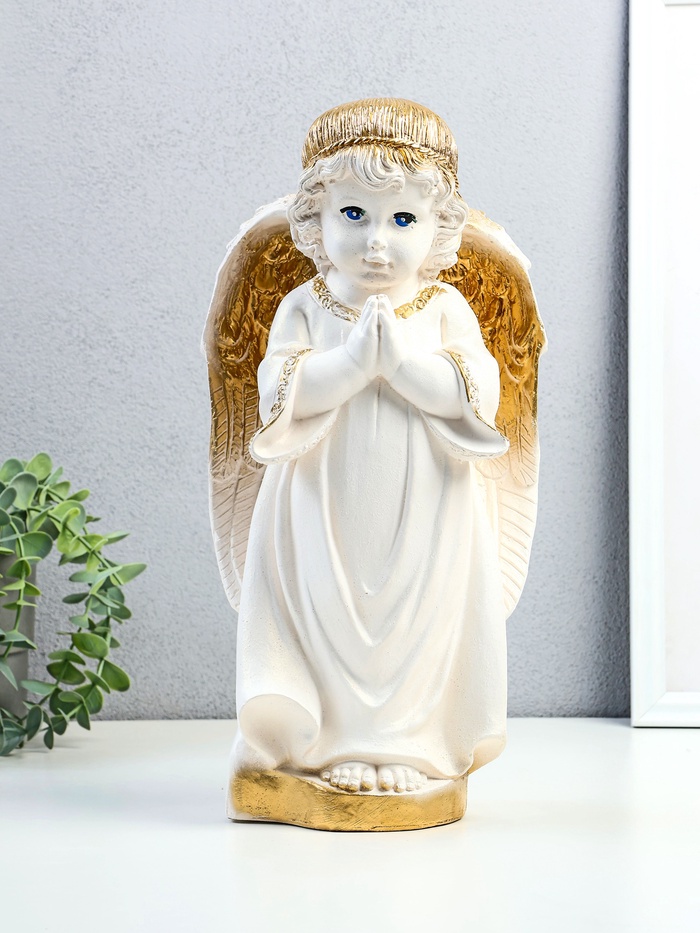 Фигурка гипс «Ангел в молитве», белое золото, 17×15×35 см — Характеристики