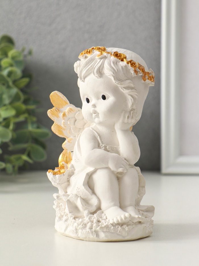 Фигурка гипс «Ангел в цветах», 13×8 см, белая — Характеристики