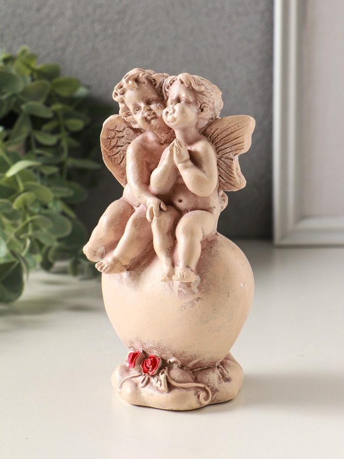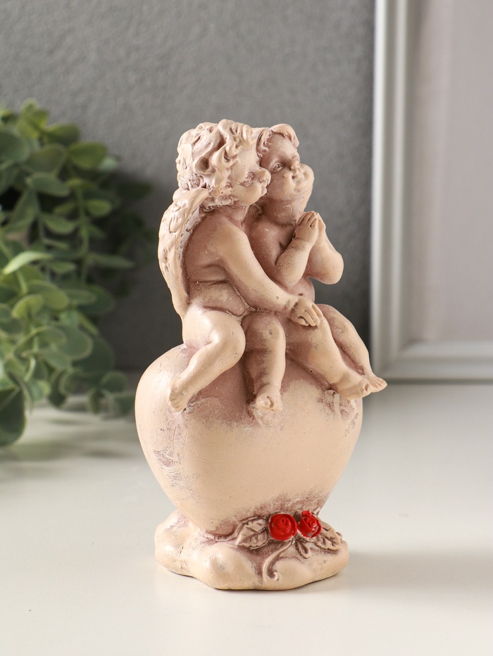 Фигурка гипс «Ангелочки на сердце», 15 см, эффект старения, слоновая кость — Характеристики