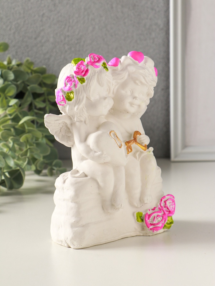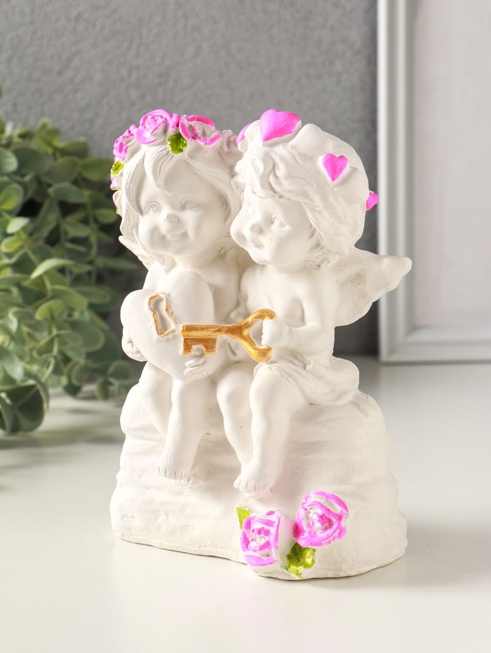 Фигурка гипс «Ангелочки с замком и ключиком», 16×11 см, белый с росписью — Характеристики