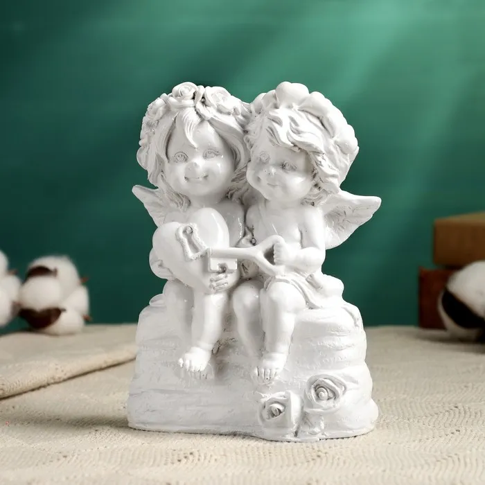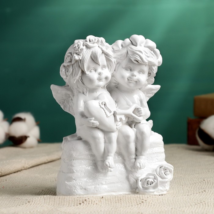 Фигурка гипс «Ангелы с сердцем на замочке», белый, 15×11 см — Характеристики