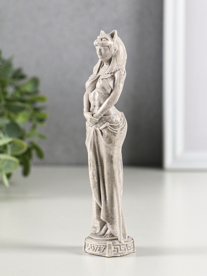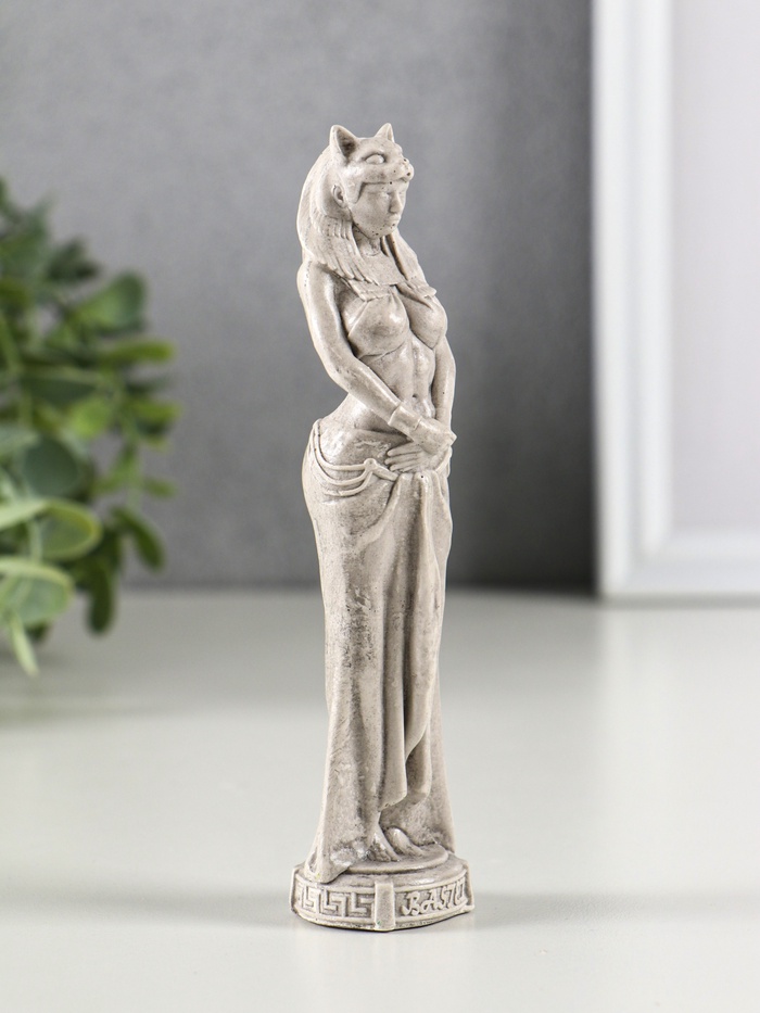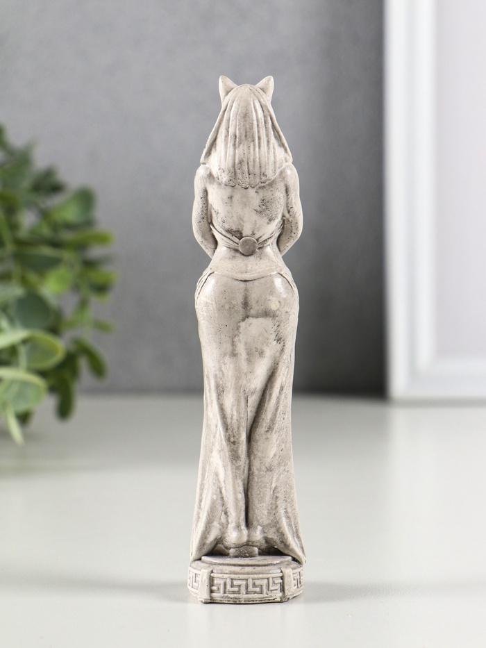 Эта гипсовая статуэтка египетской богини Баст привносит в интерьер дух древней цивилизации. Строгая элегантность силуэта и благородный серый оттенок «под камень» создают атмосферу загадочности и спокойствия. Универсальный дизайн делает фигурку самостоятельным арт-объектом для кабинета или полки, а также выразительным акцентом для тематической вечеринки.