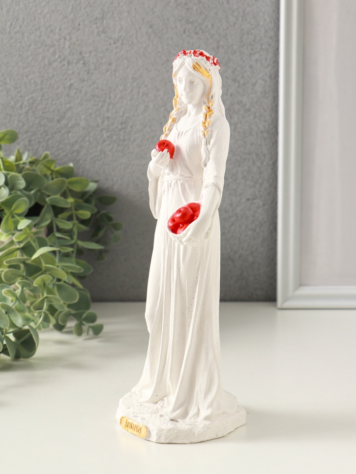 Эта расписная гипсовая фигурка с богиней Идунн — символ вечной молодости и обновляющейся силы природы. Она напоминает о внутренних источниках жизненной энергии, которые мы находим в заботе о близких и в моменты тишины. Изделие станет глубоким личным талисманом или осмысленным подарком, передающим самые тёплые пожелания.