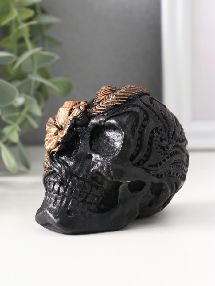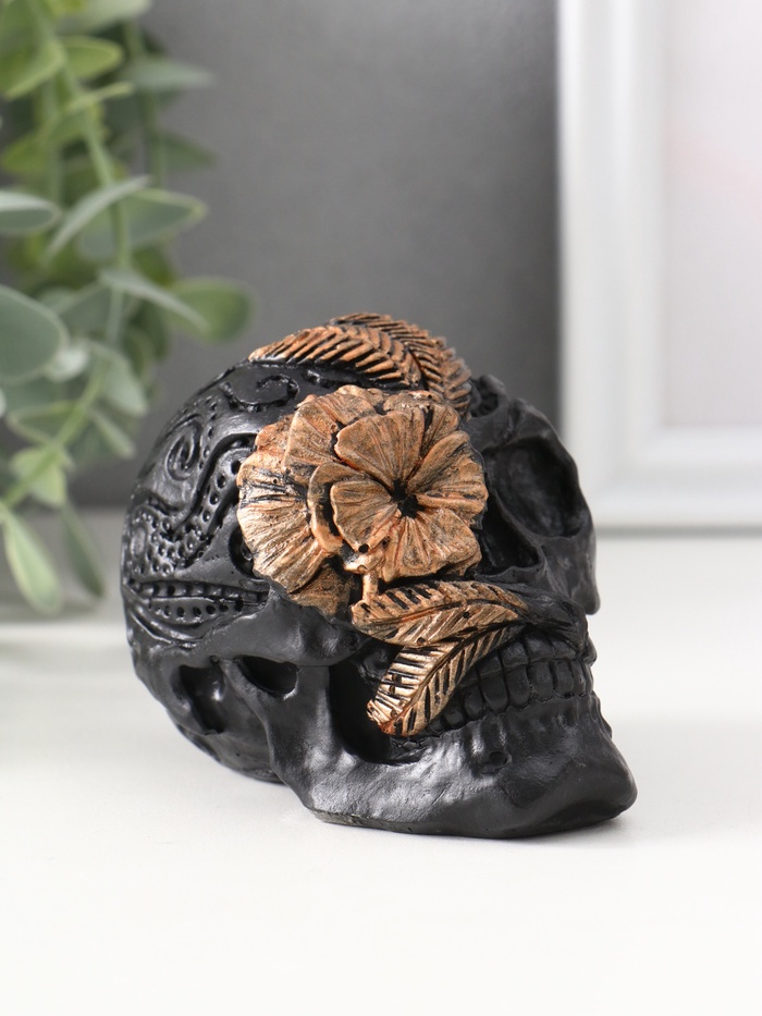 Фигурка гипс «Череп с цветком», 7×6×9 см, чёрная — Характеристики