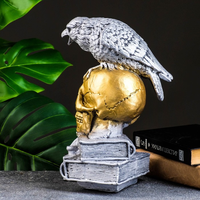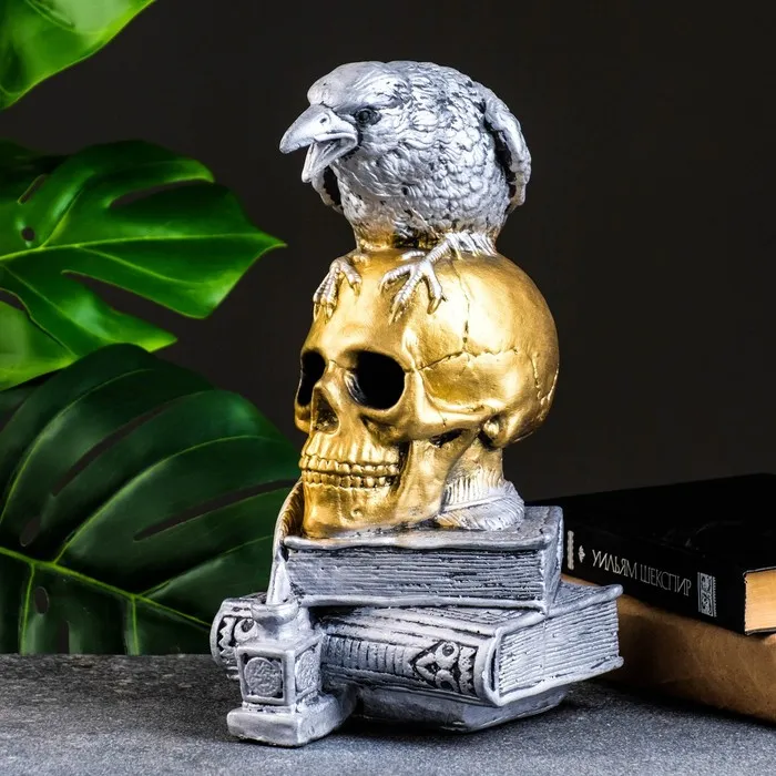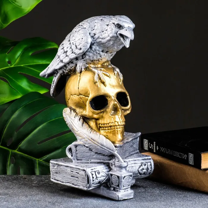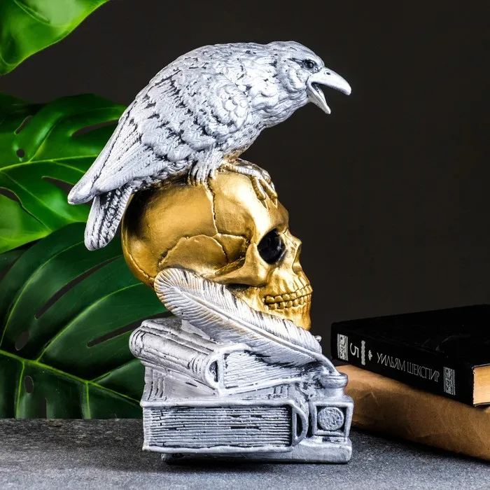 Фигурка гипс «Череп с вороном», бронза с серебром, 28 см — Характеристики