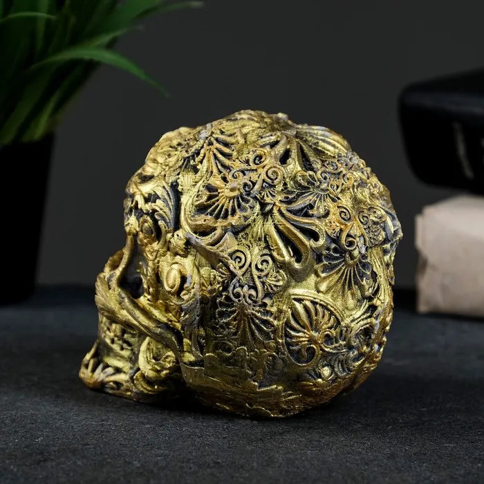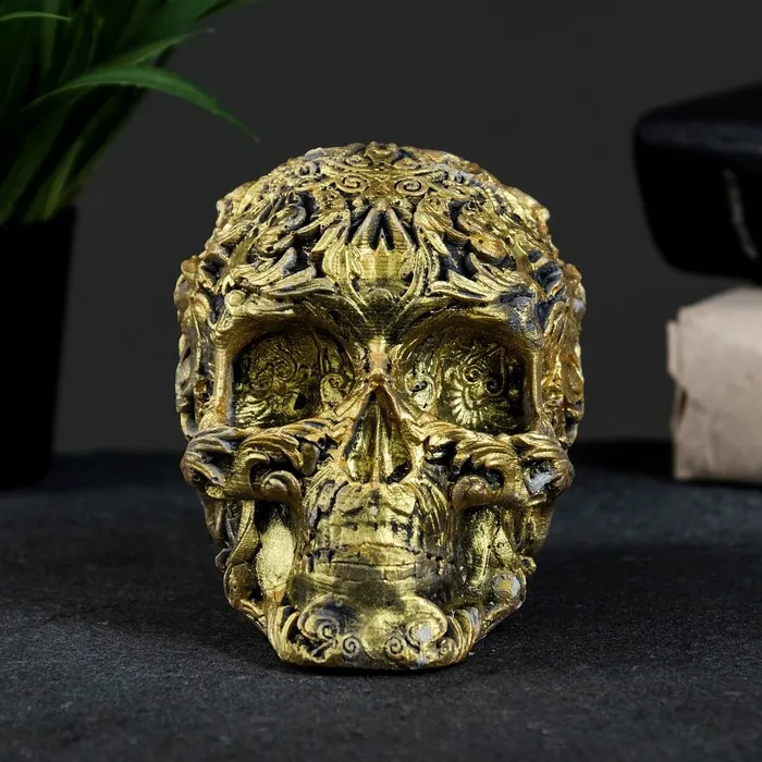 Фигурка гипс «Череп цветной», состаренное золото, 10×12×8 см — Характеристики
