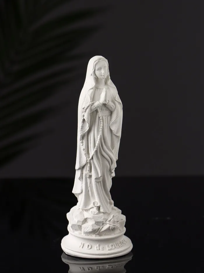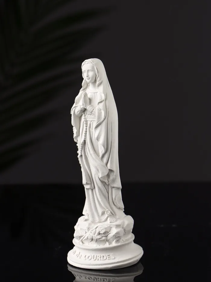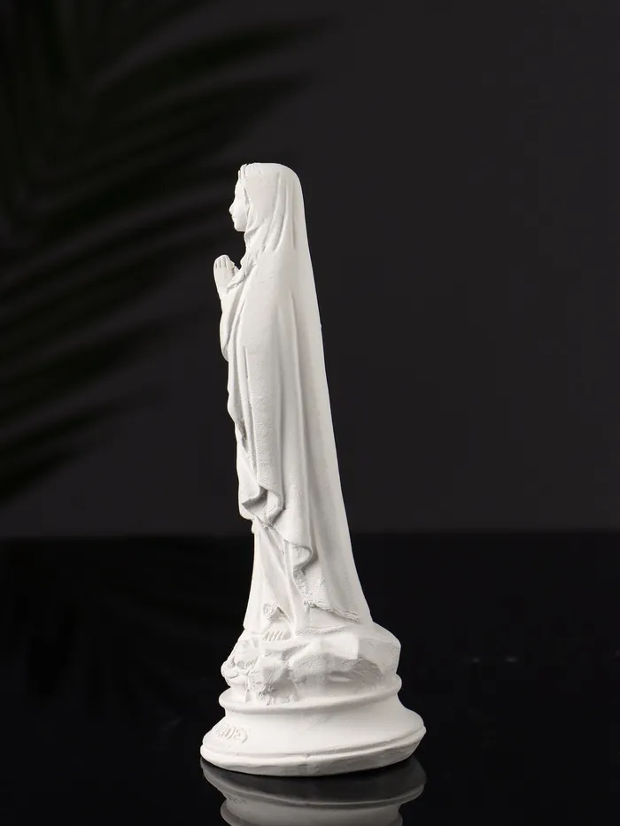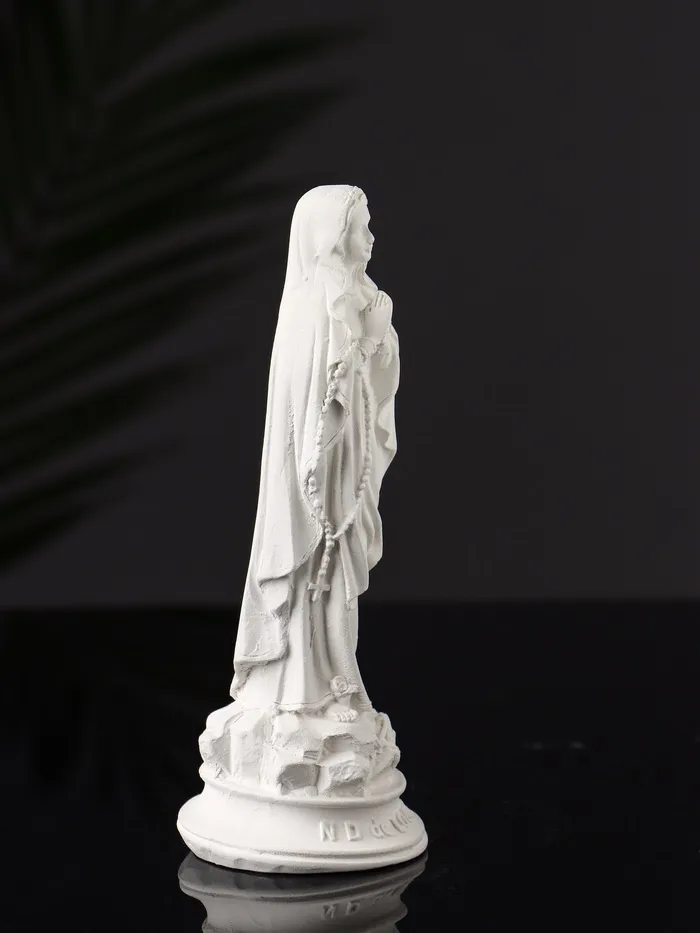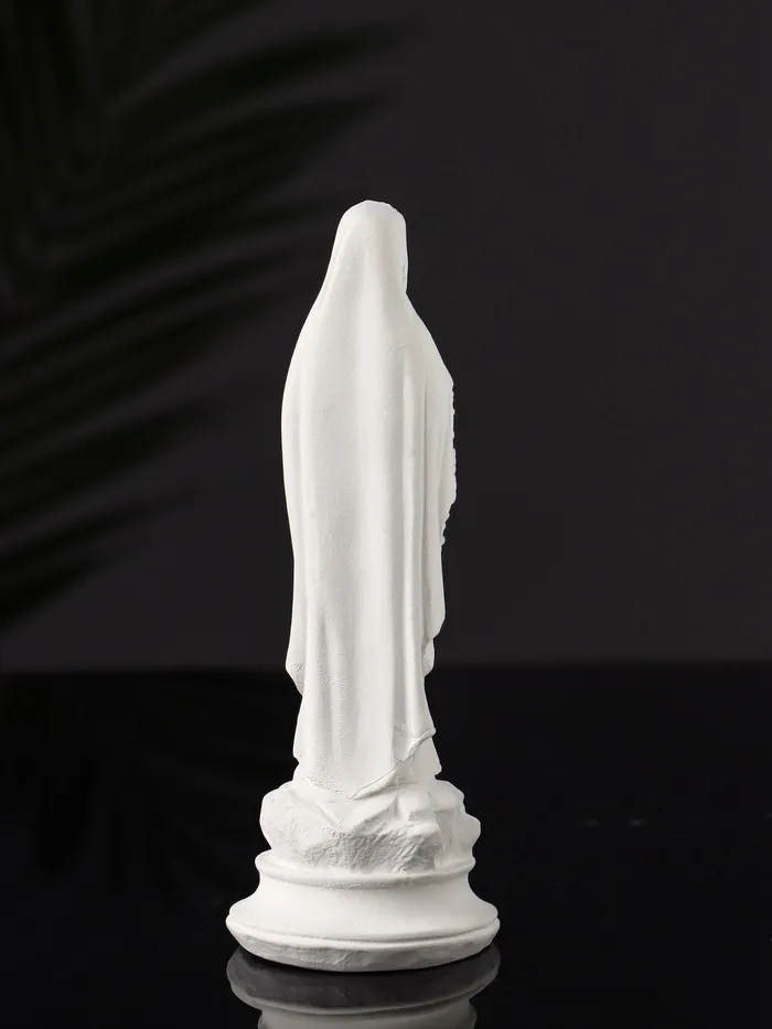 Белоснежный оттенок фигуры подчеркивает её чистоту и торжественность, а продуманная детализация делает образ Богородицы живым и проникновенным. Компактные размеры позволяют разместить её как на полке, так и на столе, создавая особую атмосферу в любом уголке вашего дома или рабочего пространства.