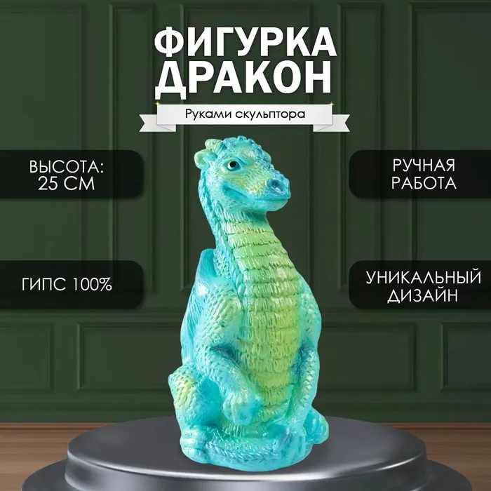 Фигурка гипс «Дракон», 25×12×13 см, бирюзовый — Характеристики