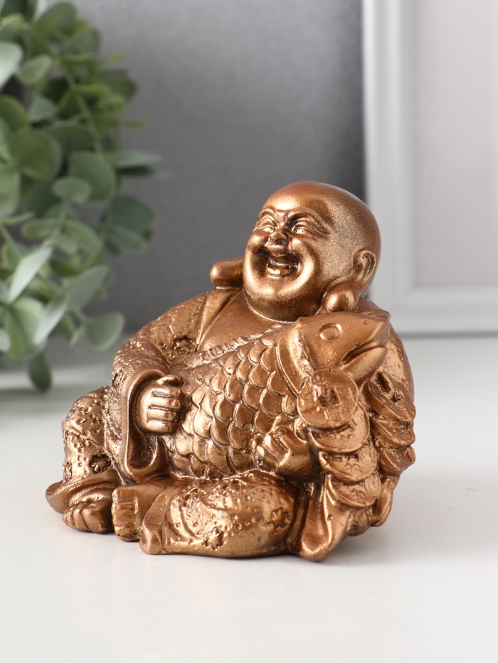 Эта гипсовая фигурка Хотея под бронзу — больше чем декор. Она создаёт в пространстве атмосферу изобилия и спокойной радости, напоминая о том, что настоящее богатство кроется в гармонии. Универсальный образ японского божества счастливой судьбы принесёт в ваш дом удачу и ощущение праздника.