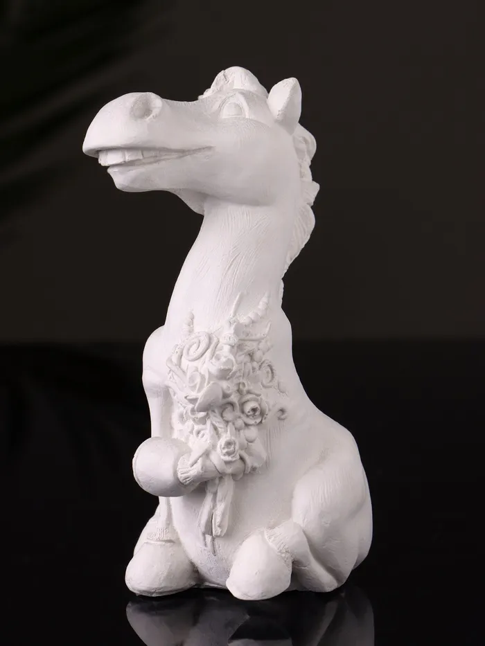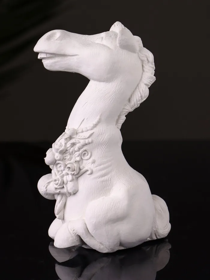 Погрузитесь в мир утонченной красоты с изысканной фигуркой коня, выполненной из гипса и окрашенной в чистый белый цвет. Высота 11 см делает её идеальным акцентом для любого интерьера, а добавленный букет придаёт особую изюминку, превращая простую фигурку в настоящий символ элегантности и стиля.