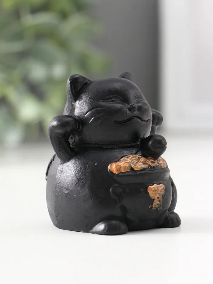 Чёрная гипсовая фигурка кота с поднятой лапой — это больше, чем декор. Это универсальный знак удачи и благополучия, понятный без слов. Его сдержанный дизайн впишется в любой интерьер, от домашнего кабинета до уютной кофейни.