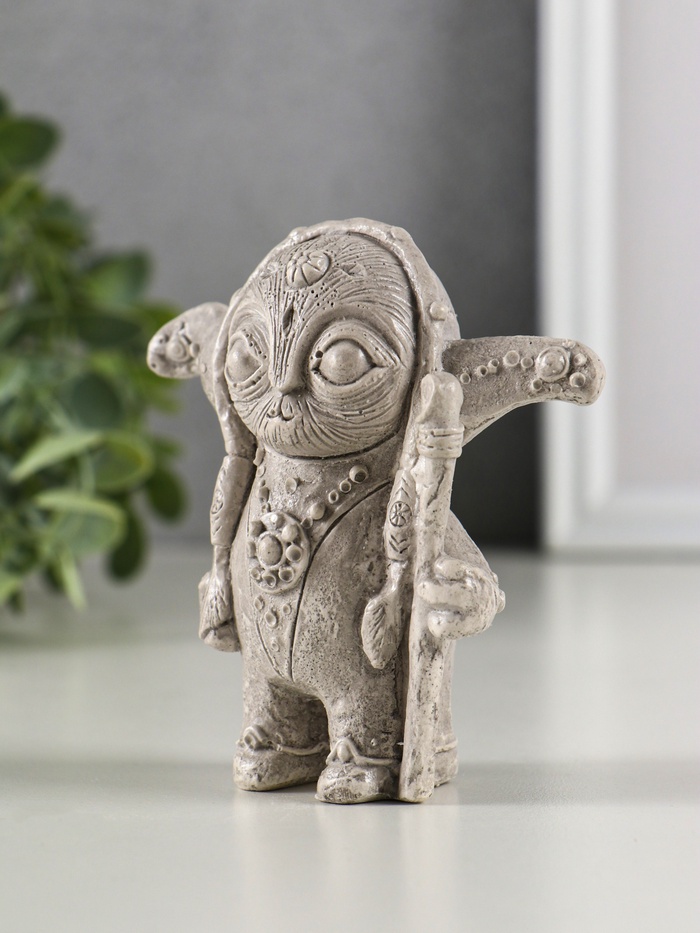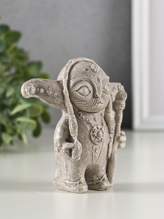 - Эффект состаренного камня: Фигурка покрыта специальной краской, которая создаёт впечатление, будто она высечена из настоящего валуна и прошла через века. Такая фактура отлично смотрится на полке, рабочем столе или в качестве элемента более сложной композиции.