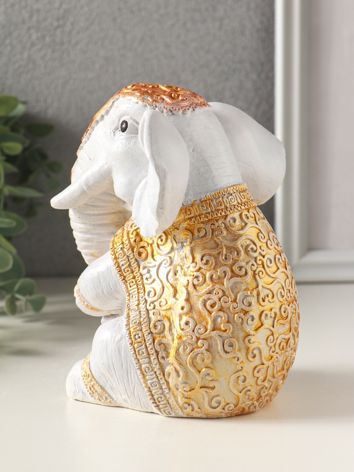 Серый гипсовый слон с золотой росписью — это элегантный акцент для интерьера, который приносит в дом атмосферу спокойствия и мудрости. Фигурка станет осмысленным подарком, символизирующим надежность, удачу и интеллект.