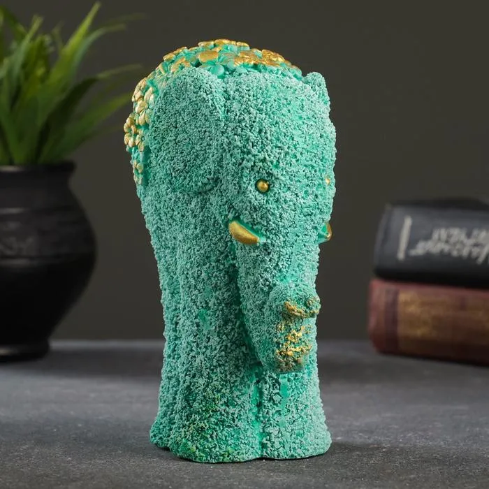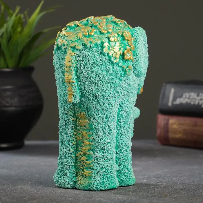 Фигурка гипс «Слон из цветов», бирюзовый с позолотой 18×12×10 см