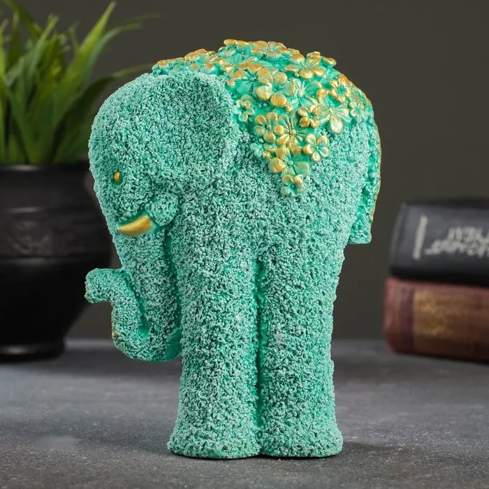 Фигурка гипс «Слон из цветов», бирюзовый с позолотой 18×12×10 см — Характеристики
