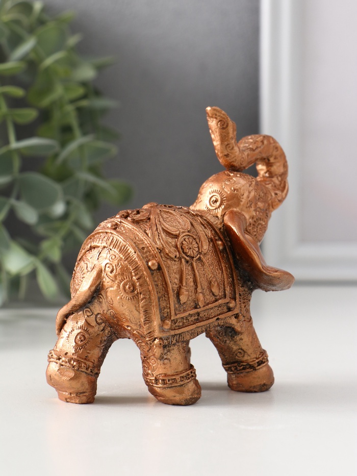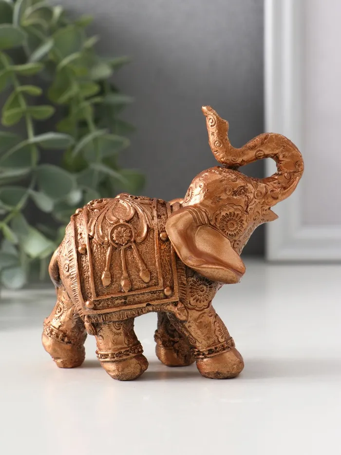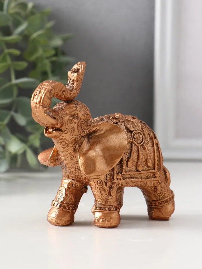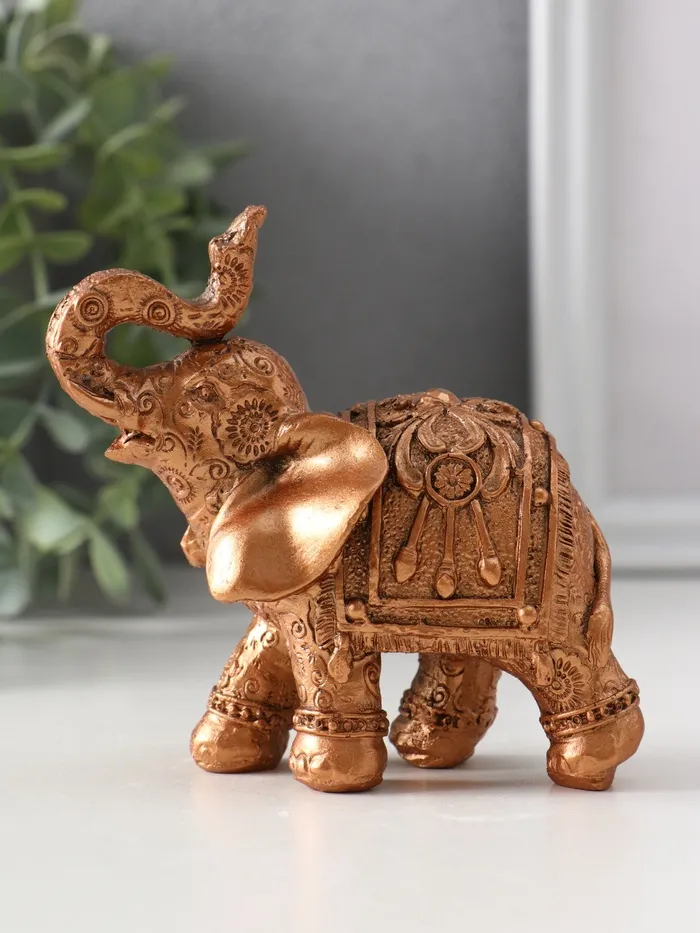 Эта статуэтка слона под бронзу привносит в интерьер дух спокойствия, мудрости и стабильности. Универсальный образец восточного декора станет значимой деталью на полке кабинета, создаст особое настроение в гостиной или послужит солидным подарком, символизирующим надежность и добрую волю.