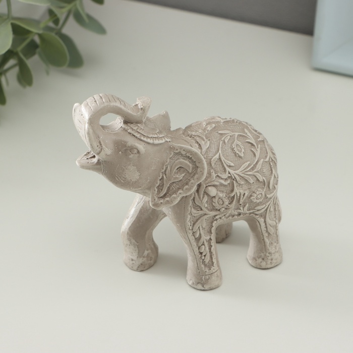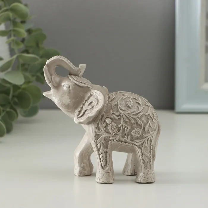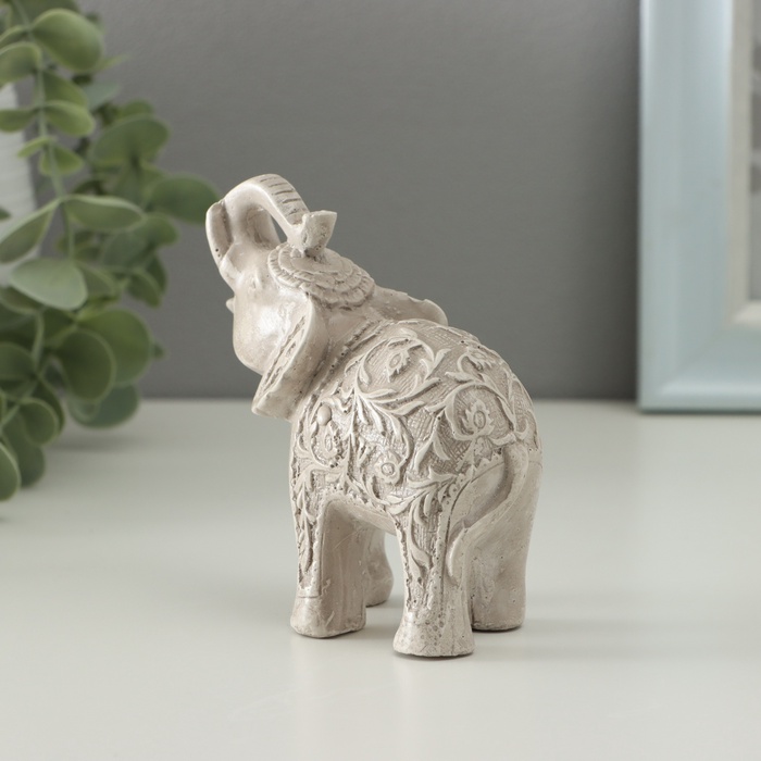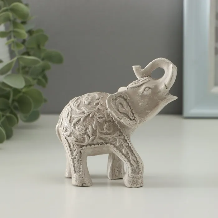 Фигурка гипс «Слон резной», 10×10×5 см, слоновая кость